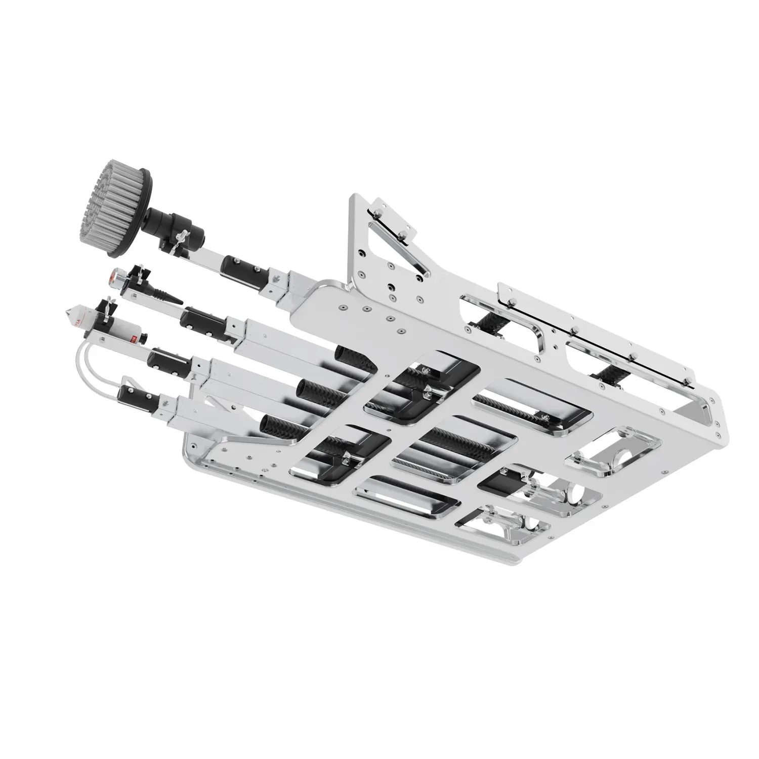 The EdgeExtend has up to 4 extending tooling rams, that are built to mount the existing range of Rovtools. These rams are powered by 24VDC motors and is controller via a 2U topside, with RS-485 Communications.